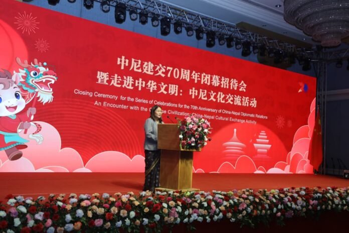 काठमाण्डौ । उपसभामुख इन्दिरा रानाले चीनसँगको सौहार्दपूर्ण सम्बन्धलाई नेपालले उच्च महत्वका रुपमा लिदै आएको बताउनुभएको छ । गणतन्त्र चीन र नेपालका बिच कूटनीतिक सम्बन्ध स्थापनाको ७०औँ वार्षिकोत्सवको अवसरमा नेपालस्थित जनवादी गणतन्त्र चीनको दूतावासले शनिवार आयोजना गरेको बार्षिकोत्सब कार्यक्रममा सम्बोधन गर्दै उपसभामुख रानाले उक्त धारणा राख्नुभएको हो।