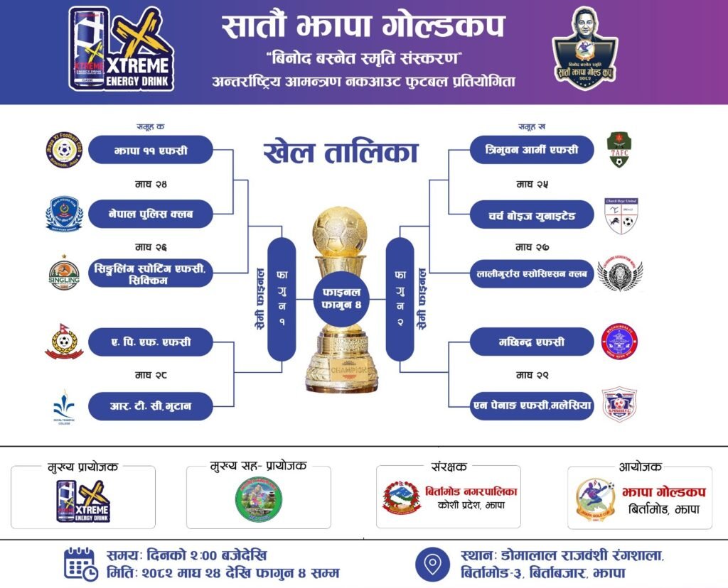 सातौँ झापा गोल्डकपको खेल तालिका सार्वजनिक