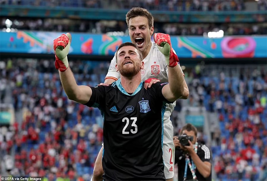 हिजै राति भएको पहिलो खेलमा स्वीट्जरल्यान्डलाई पेनाल्टी सुट आउटमा पराजित गर्दै तीन पटकको च्याम्पियन स्पेन युरो २०२० को सेमिफाइनलमा पुगेको छ । सुरुआतदेखि नै स्वीट्जरल्यान्डको रक्षापंक्तिमाथि निरन्तर आक्रमण गरेको स्पेनले आठौं मिनेटमा डेनिस जकारियाले गरेको आत्मघाती गोलसँगै अग्रता लिएको थियो ।