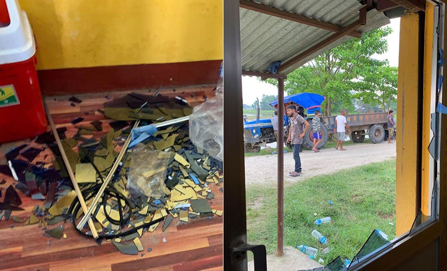 अध्यक्ष लिङ्गदेनले गाउँसभा विथोल्न आएका अराजक व्यक्तिकोे आक्रमणबाट झ्याल, ढोका, टेवल कुर्सीलगायत कार्यालयका भौतिक संरचनामा क्षति पुगेको बताए ।