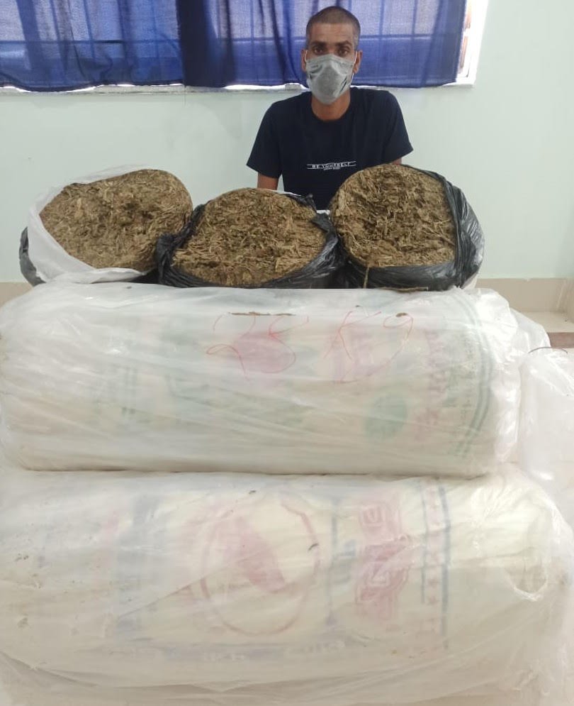 सुनसरी कोशी गाऊपालिका ८ भाण्टाबारी राजमार्गबाट प्रहरीले १ सय ६५ केजी गाँजा सहित १ जनालाई पक्राउ गरेको छ । पक्राउ पर्नेमा सोही स्थानका ४० बर्षीय गणेश यादव रहेका छन् । आईतबार बिहान पौने ३ बजे जिल्ला प्रहरी कार्यालय सुनसरी र सिमा प्रहरी चौकी भण्टाबारीबाट खटिएको प्रहरी टोलीले राजमार्गको दक्षिण पानीटंकी नजिक प्लाष्टिकले बेरिएको अबस्थामा ६ बोरा तयारी लागूऔषध गाँजा सहित यादवलाई पक्राउ गरेको हो । पक्राउ परेका यादव उपर लागूऔषध नियन्त्रण ऐन २०३३ वमोजिम म्याद थप गरी अनुसन्धान कार्य भईरहेको प्रहरीले जनाएको छ । (तस्वीर स्रोत : १ नम्बर प्रदेश प्रहरी कार्यालय बिराटनगर)